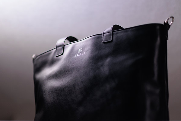 制作の段階で最も時間を要したのが本体の革の選択でした。 質のいい革は多くあるものの、BLESSの求める革は質感や柔らかさ、身に着けた時の感覚、タフな耐久性など、求めるスペックが高く革選びに難航していました。様々な角度から検討しそしてようやく辿り着いたのが姫路の老舗タンナーが開発した「防水革」です。